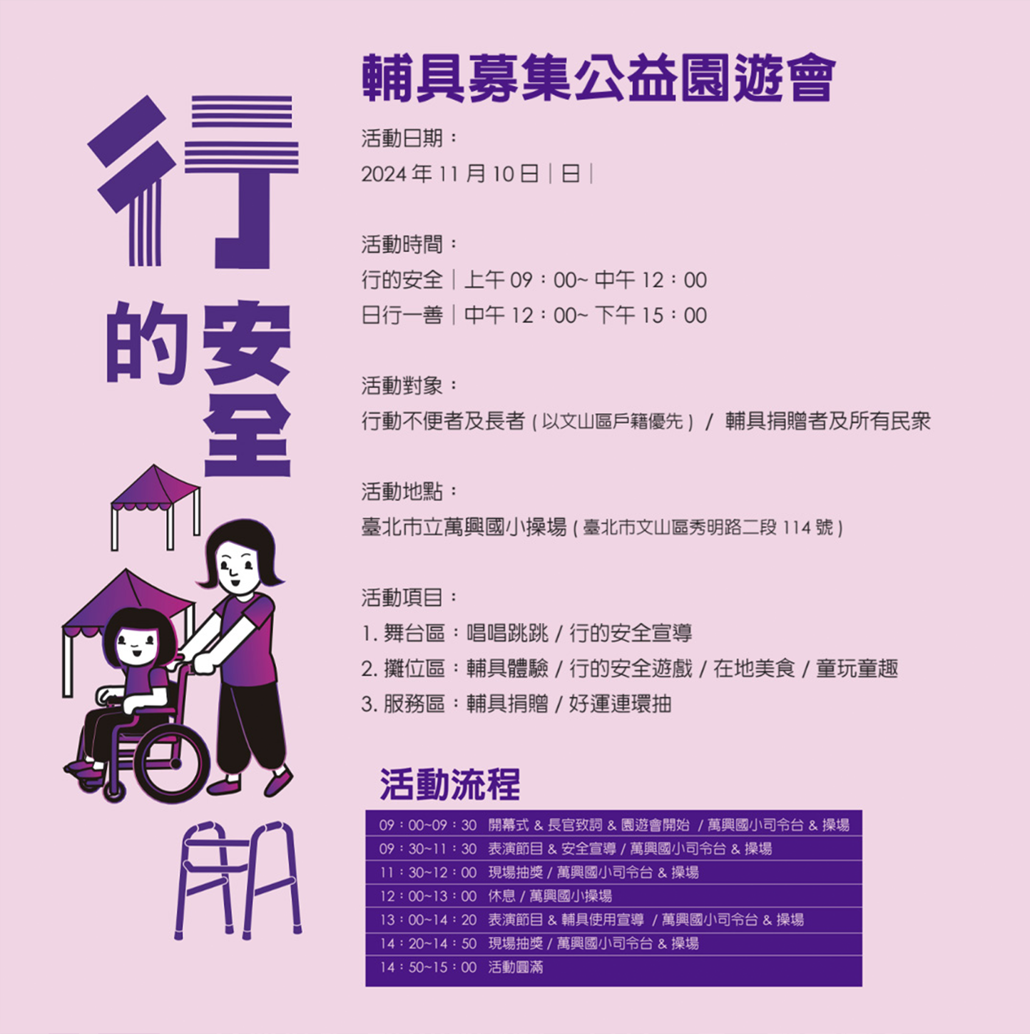 活動對象:行動不便者及長者 ( 以文山區戶籍優先 ) / 輔具捐贈者及所有民眾