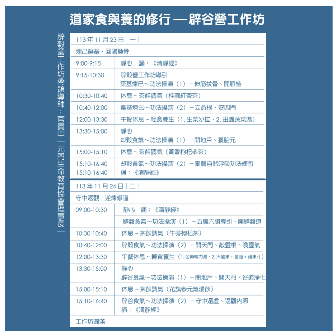【辟榖營工作坊】帶領您認識千年道家「卻穀食氣」