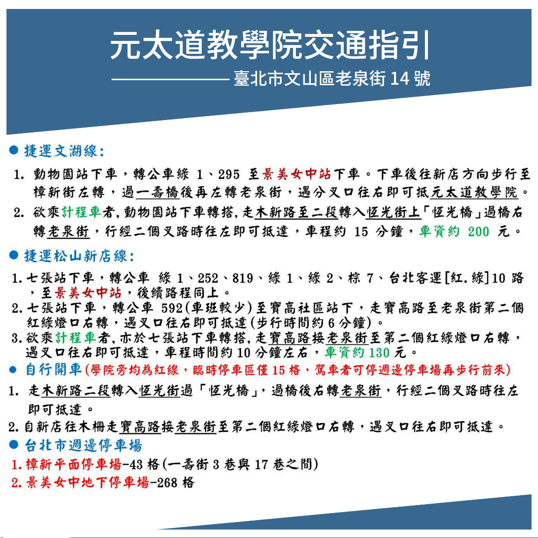 主辦單位:元太道堂、社團法人臺北市元太慈愛人文推廣協進會