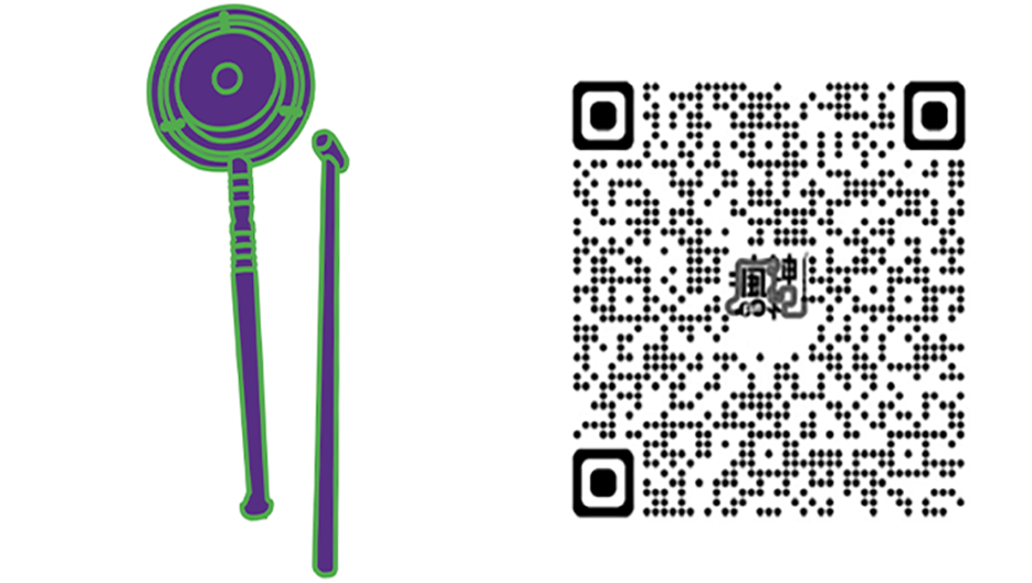 引磬後來延伸出一種大小如同桃子的形式,底下綁有竹枝或木桿,以小鐵鎚敲擊使用,亦稱為引磬。