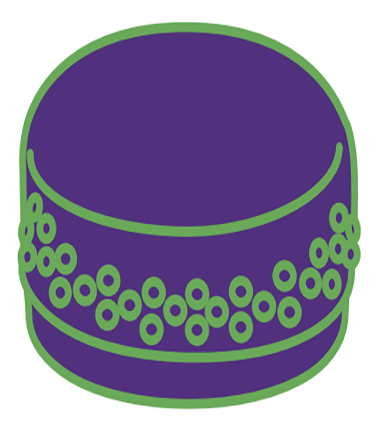 由兩片邊緣扁平而中央有半球狀隆起的圓型銅片組成,正中有孔,